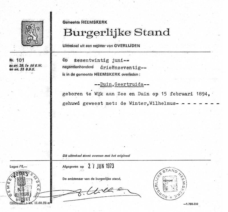 Wilhelmus de Winter en Geertruida Duin