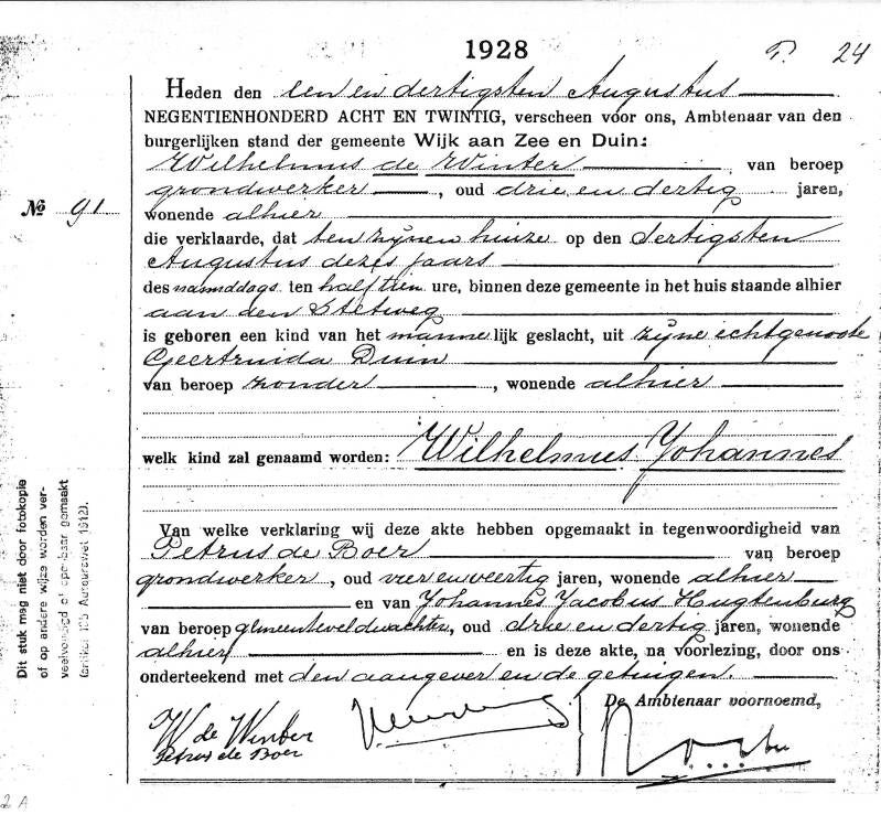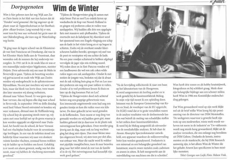 Op 30 augustus 1928 werd ik geboren als vierde kind van Willem de Winter en Guurtje Duin. Één van hun kinderen was toen al op zeer jeugdige leeftijd overleden.